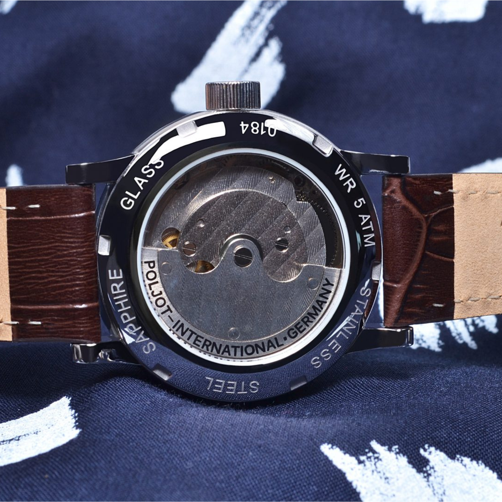 Further equipment includes a round stainless steel case with glass bottom through which a skeletonized automatic movement can be seen. The water resistance of the model is 5 ATM. The light version of the model is rounded off by a dark brown leather strap, the majestic Royal blue dial gets a metal strap, which was developed especially for this model and perfectly adapted to the case. Both models are limited to 50 pieces each.