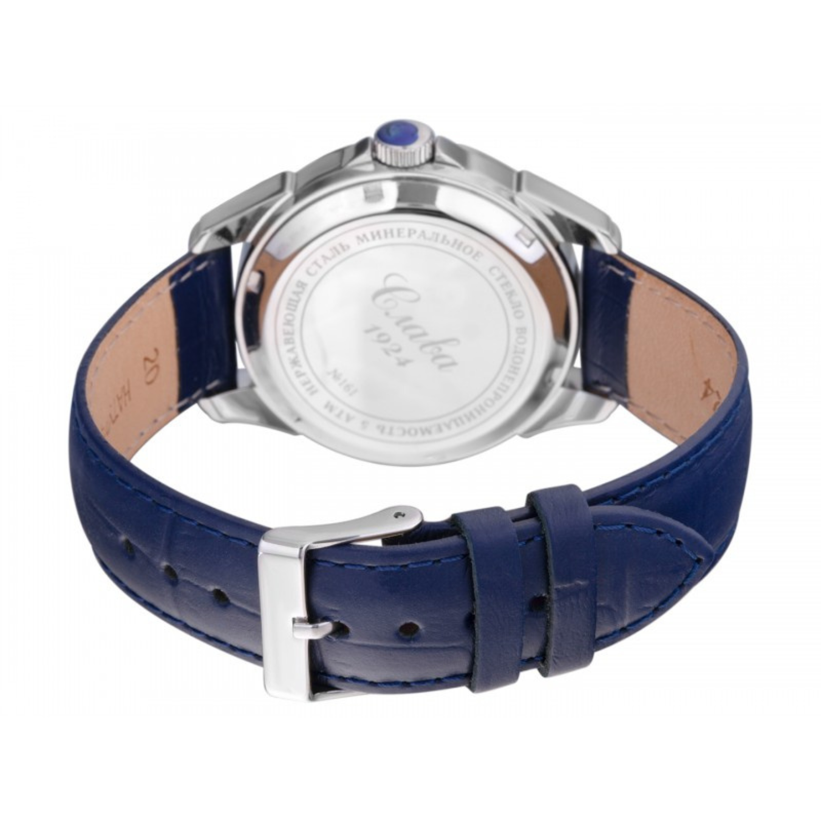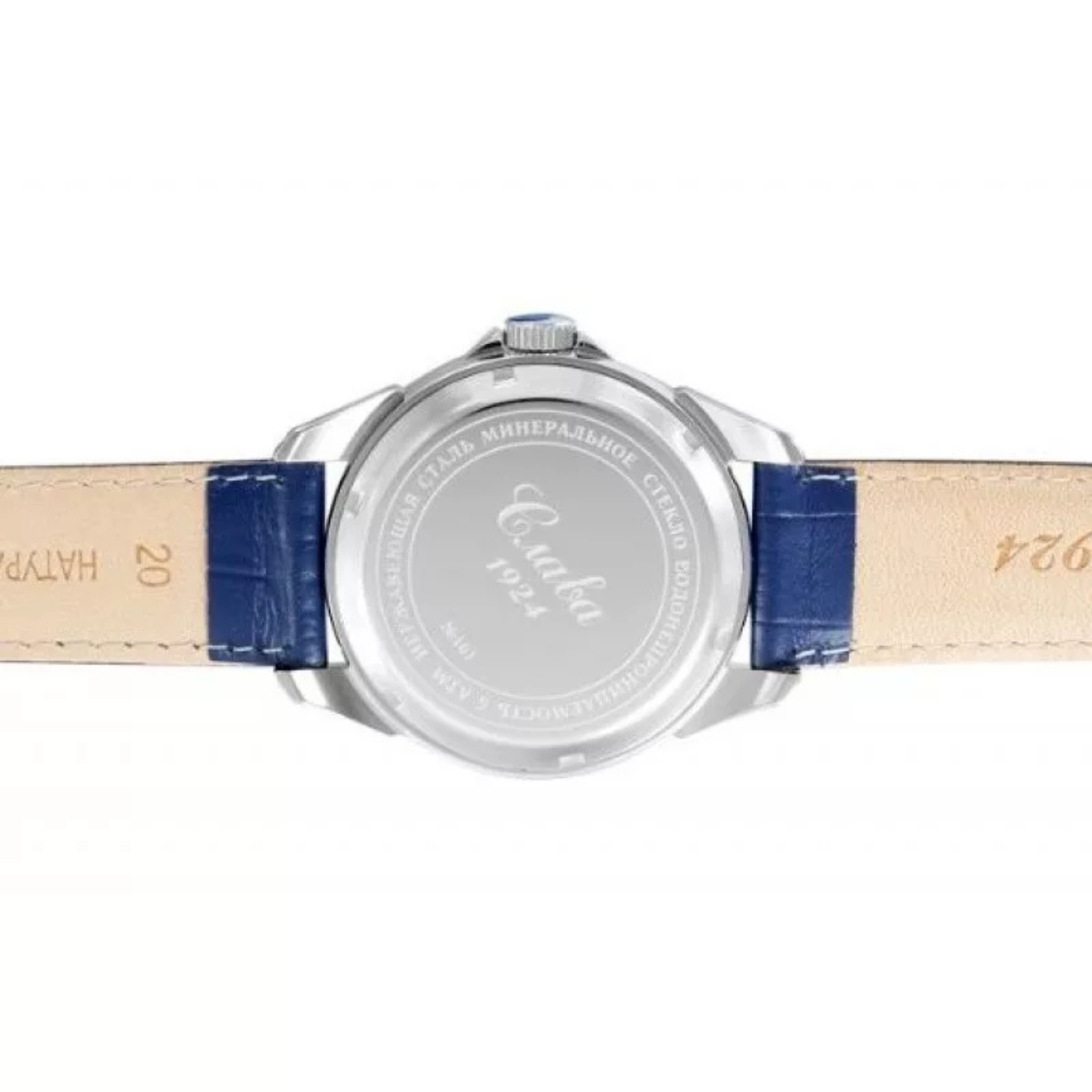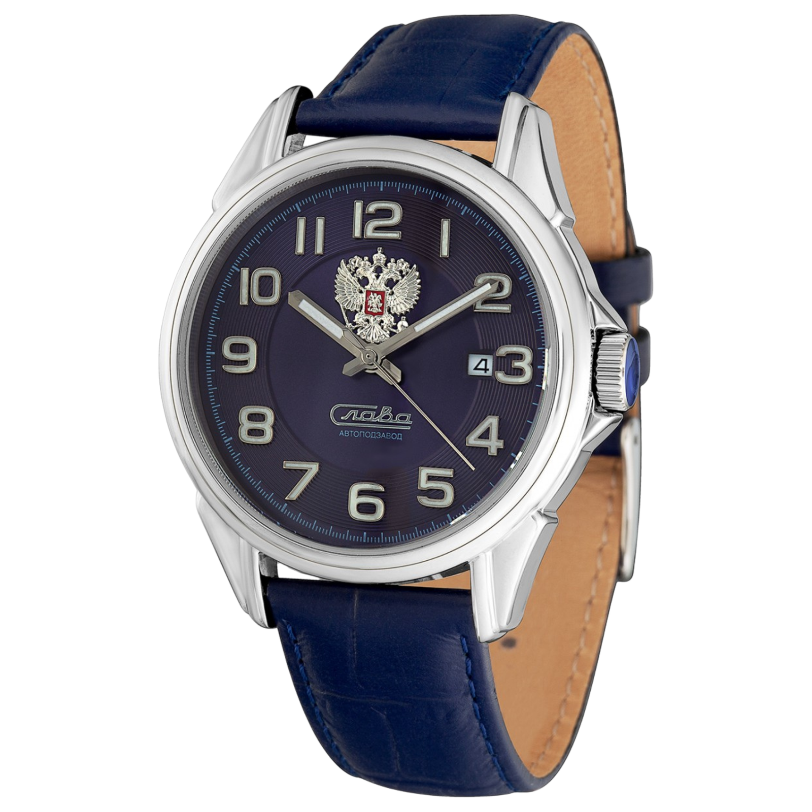 The Slava “Tradition” is a sophisticated men’s timepiece featuring the reliable Japanese Miyota 8215 automatic mechanical movement (self-winding). This model boasts a thin $8 \text{ mm}$ stainless steel case and a striking blue dial with the Russian Coat of Arms logotype. It includes a practical date display and is protected by durable sapphire-coated mineral glass, making it a perfect blend of classic style and reliable engineering.