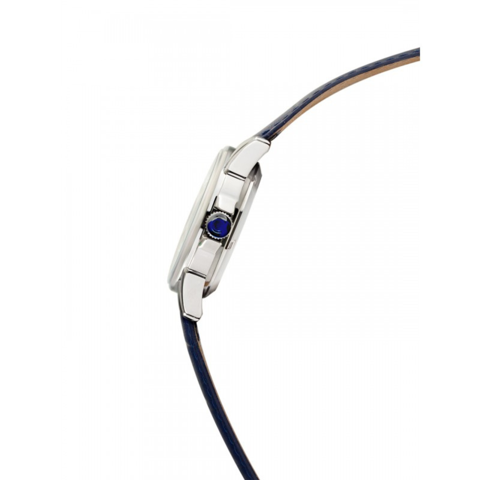 The watch is secured with a natural leather strap and offers $3 text{ ATM}$ water resistance.