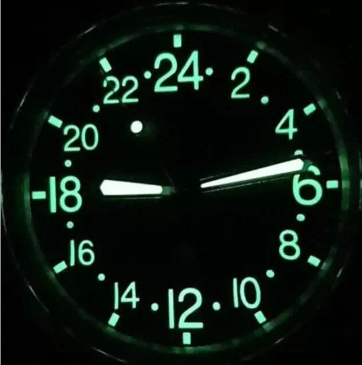Luminescence: Hands, indexes, and numerals filled with variable fluorescent paint