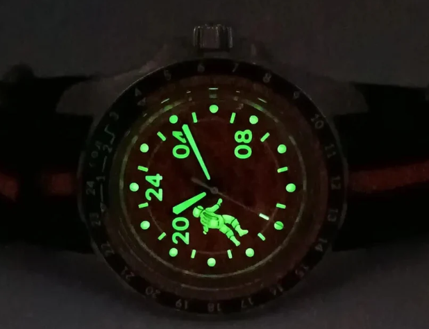This Amphibia model is a limited edition timepiece, with only 335 units ever produced, making it a rare and highly collectible watch. It is a 24-hour mechanical automatic model, where the hour hand completes one full rotation every 24 hours, offering a unique and specialized time display.