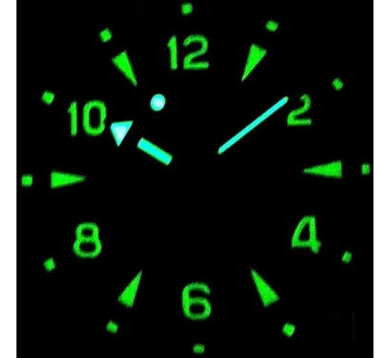 Luminescence: Hands, indexes, and numerals filled with variable fluorescent paint