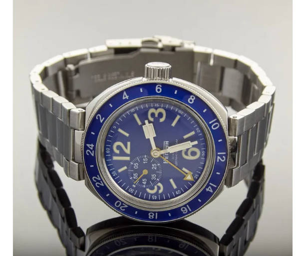 This Neptune model is a mechanical automatic watch equipped with a GMT function. The GMT hand is not independently adjustable, as it is mechanically linked to the main hour hand, meaning both move together. To track a second time zone, the rotating bezel can be adjusted accordingly, following a design concept similar to early GMT models such as the Rolex GMT-Master.